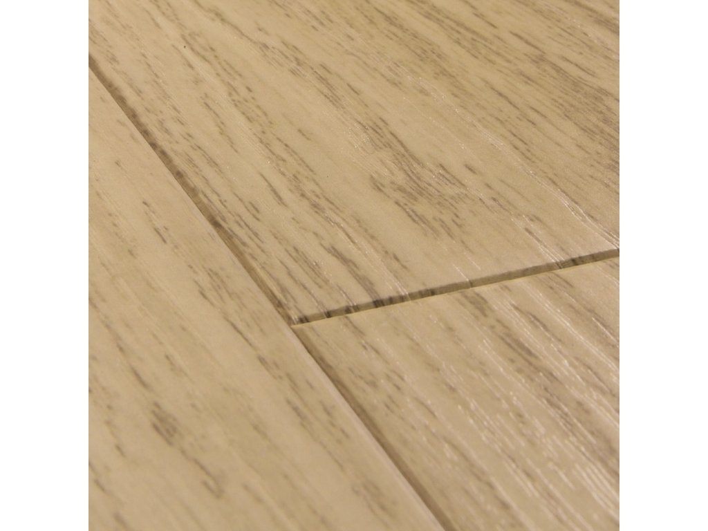 Quick Step IMPRESSIVE laminátová podlaha v deskových formátech 138 x 19 cm je velmi odolná podlahová krytina. Její trvanlivost je zaručena povrchovou vrstvou Scratch Guard. Jednotlivé lamely mají skutečné zkosení, tzn. v zářezu je viditelná i barva, provedení a struktura lamely.